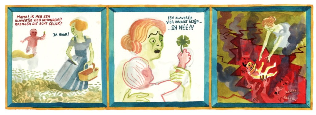 Hello ! Aujourd’hui, on évoque le très joli graphique de Brecht Evens qui nous offre des strips très jolis et tendres. Ils me donnent envie de découvrir le reste de l’univers du dessinateur !