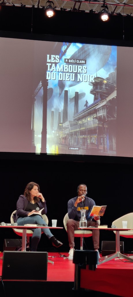 Le temps d’une heure qui m’a parue trop courte, ces deux ont discuté de leurs rapports aux œuvres de P.Djèli Clark, des méthodes de création et de traduction. De l’ immersion de l’auteur dans son œuvre, tant par sa recherche que par le fait qu’il mette autant de lui possible dans ses textes. De l’immersion de la traductrice, en échanges perpétuels par mail, en recherche des meilleures manières de transmettre l’oralité des textes de Phenderson Djèli Clark. La conclusion que c’est un travail qui demande beaucoup de recherches, mais ne donne pas forcément beaucoup de réponses.