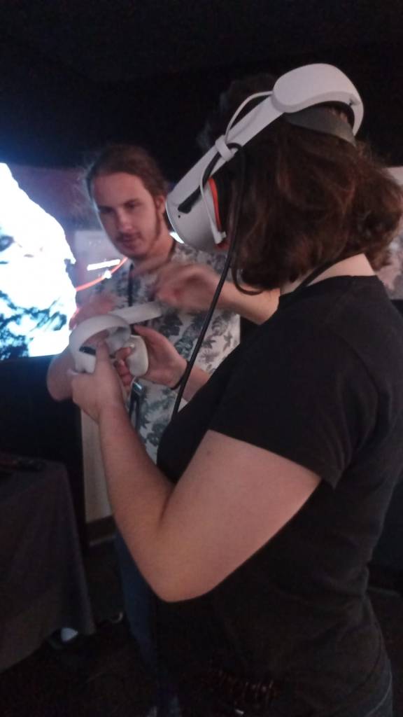 Nous sommes arrivés sur le festival à l’ouverture des portes. Cela nous a permis de nous balader un peu, de prendre nos marques sur ce lieu impressionnant et regorgeant d’énergie. Cela aussi été un des rares moments où nous n’avons pas dû faire la file pour accéder au bar de Madame Spock. Première escale, les expositions et tout particulièrement celles de l’Inserm sur « Le vaste monde des virus » et « Virus émergents ». L’occasion de retracer ces dernières années, mais aussi l’histoire et le cycle éternel que sont les épidémies. Le tout étant accompagnée d’anecdotes et histoires de la médecine que me distillait le navigateur. Ce moment a aussi été l’occasion de profiter du stand de VR2Plantets qui proposait une visite virtuelle de Mars et d’un autre corps planète. C’était ma première expérience VR, et c’était fascinant et impressionnant de découvrir Mars.